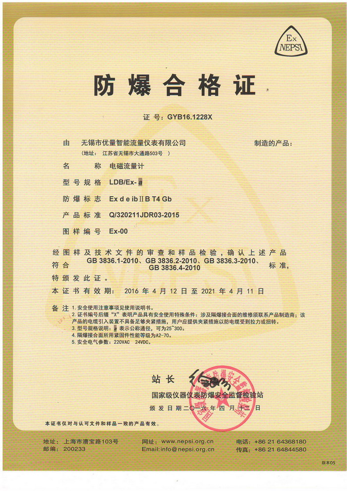 無(wú)錫優(yōu)量 電磁流量計(jì) 制造資質(zhì): (國(guó)家認(rèn)可制造資質(zhì)的正規(guī)企業(yè))